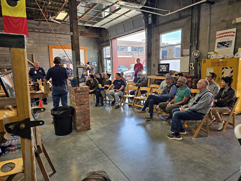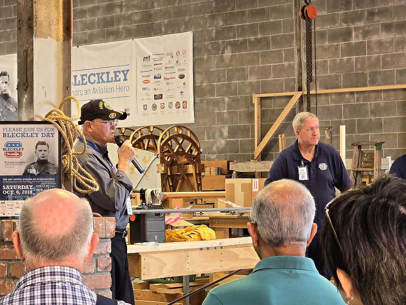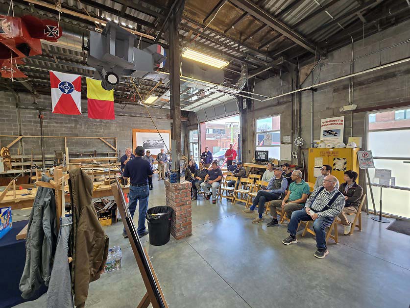 The American Institute of Aeronautics and Astronautics visited the Bleckley Workshop on November 15th. The group enjoyed their tour and our talk on Wichita’s Erwin Bleckley and the DH-4.