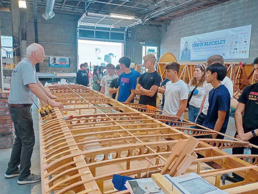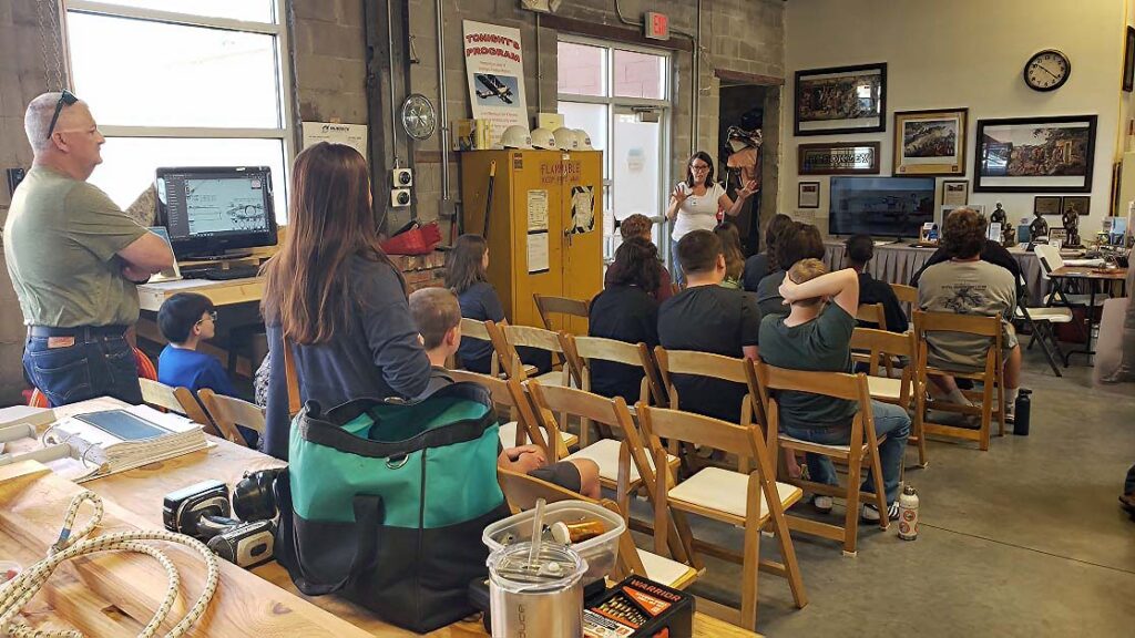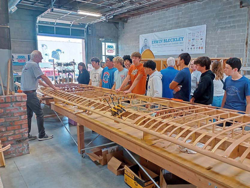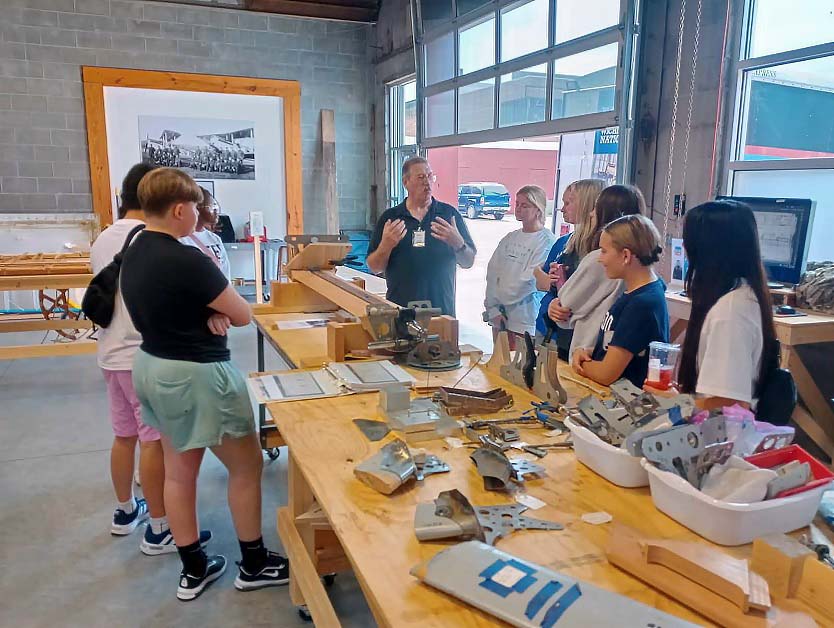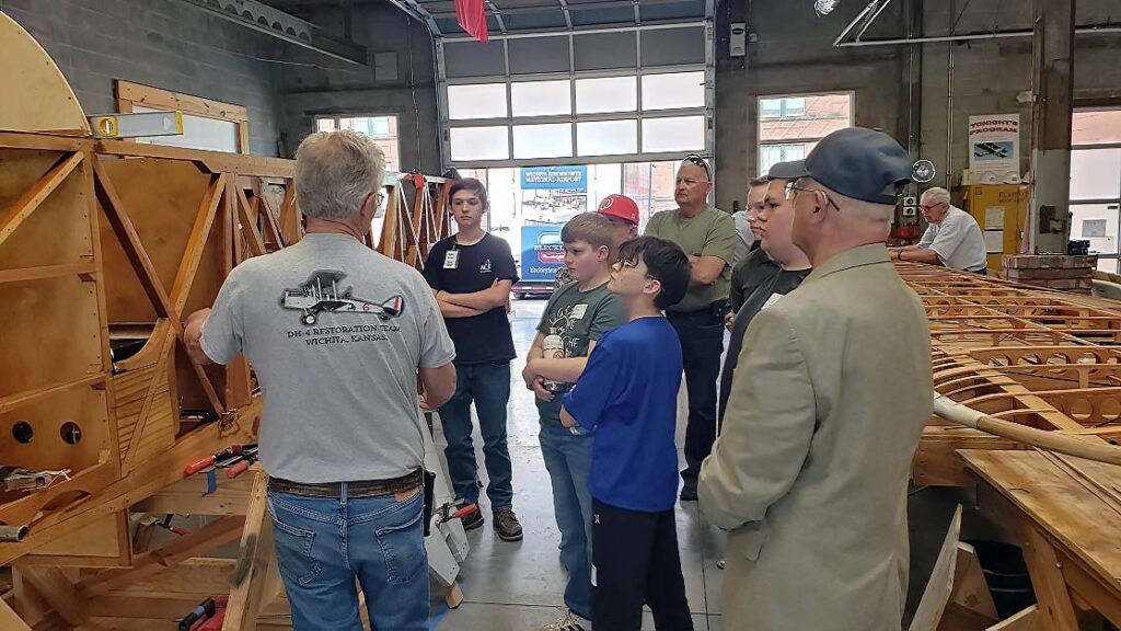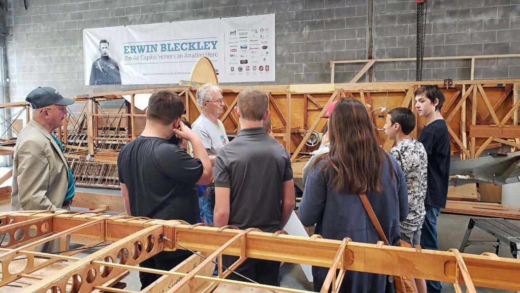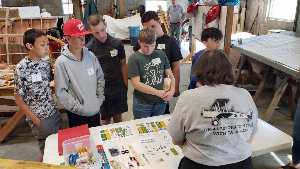 The Home Schooling Association helped schedule home schooled students to tour the Bleckley Foundation Workshop! They learned about WW1, airplanes, the DH-4 aircraft, the physics of flight, Erwin Bleckley, and Harold Goettler! They enjoyed their visit!