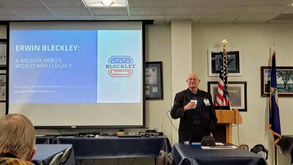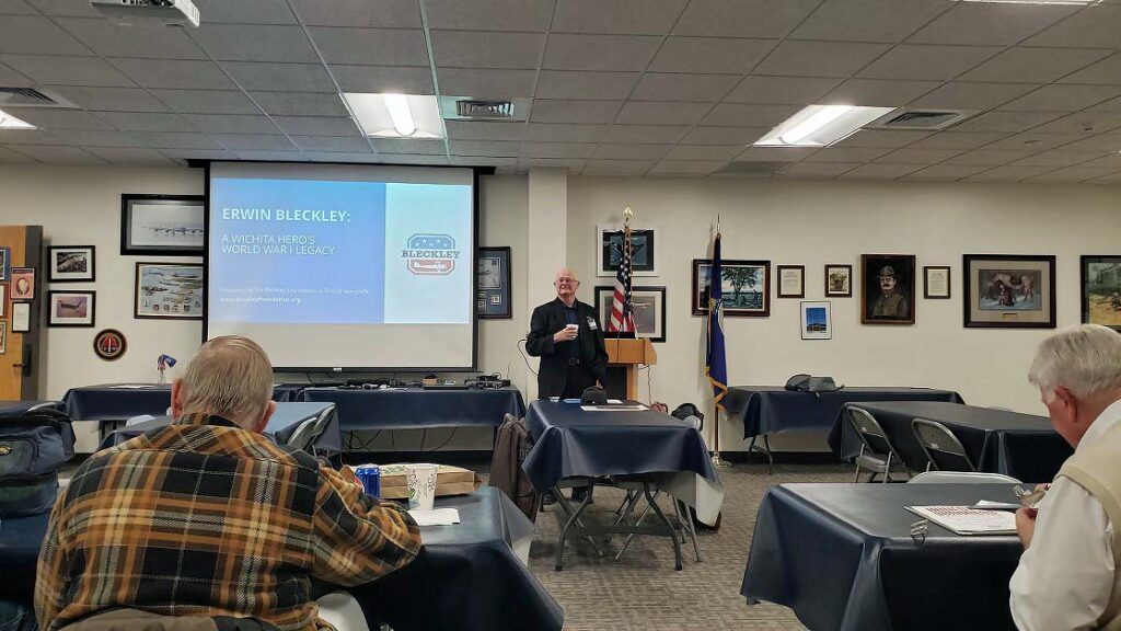 Doug Jacobs presented on Erwin Bleckley, Harold Goettler, and the Lost Battalion to attendees at the Kansas National Guard Museum.