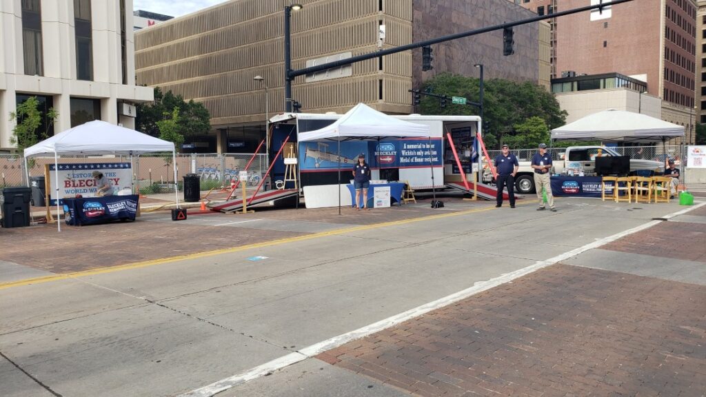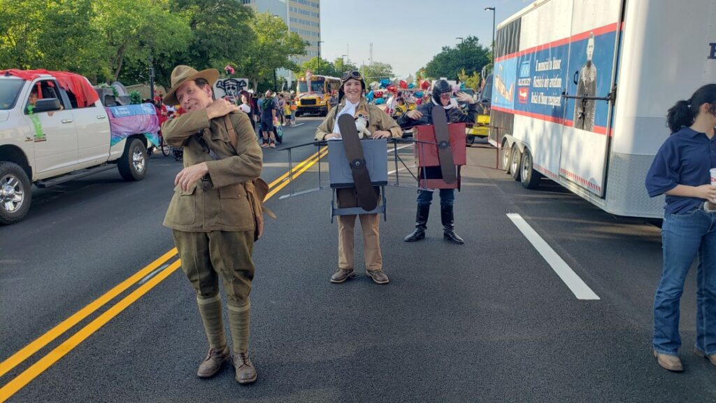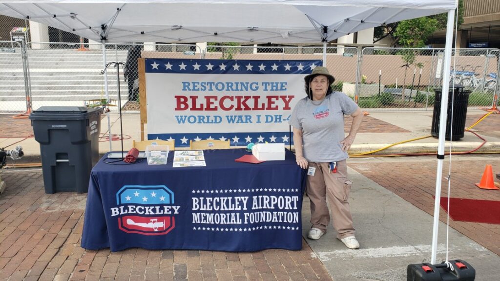 Bleckley Foundation participated in the 2025 RiverFest Parade with a WW1 US Army Uniform on a walker, a dogfight between a DH-4 and a Fokker Dr.1 Triplane, the towed Mobile Museum, and kids riding in a pickup truck!