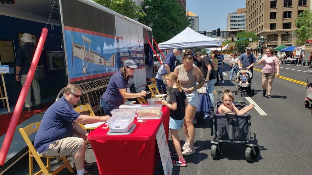 The Mobile Museum was open on the street and in the booth area on the concert and fireworks night! Kids could build a biplane and receive a paper model kit of a DH-4 airplane at the museum!